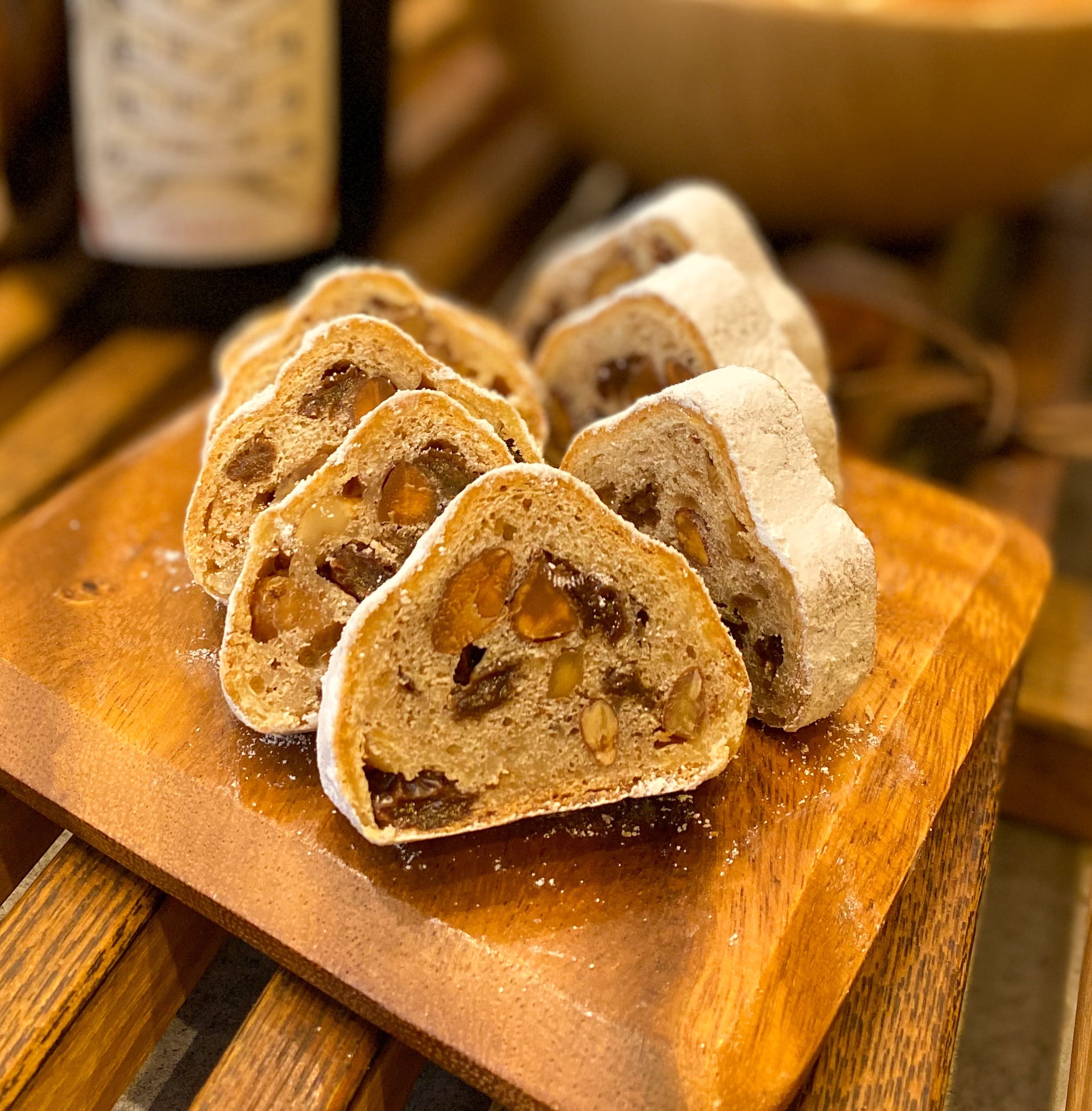 じっくりと洋酒に漬け込んだドライフルーツとナッツが入ったシュトーレンと、ドライフルーツとナッツをスパイスで調和させたベラベッカ。